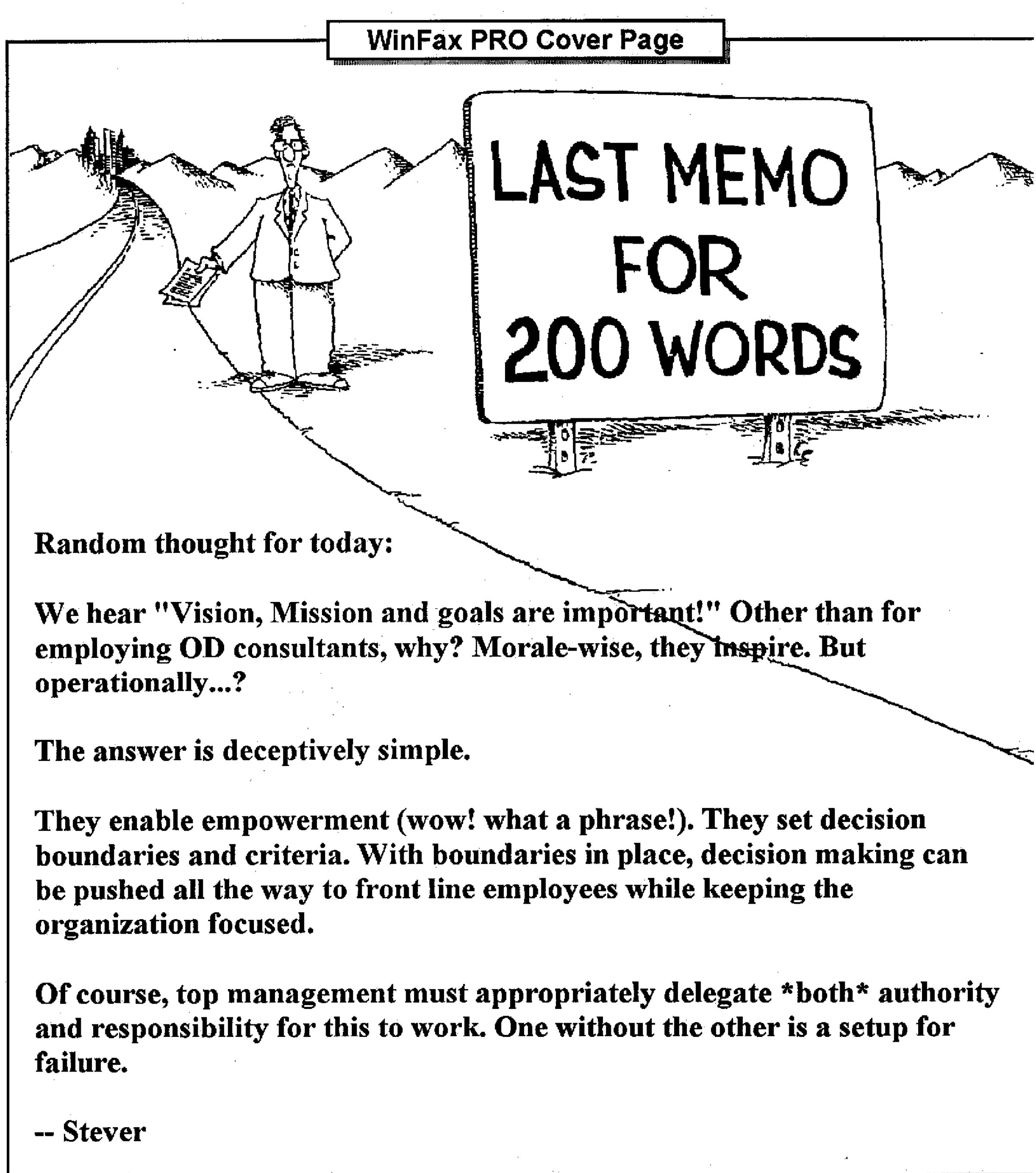 My eyes widened at the realization. I was giddy with excitement; I rushed to my fax machine (this was before email was everywhere) and faxed my great discovery to my business school professor, Len! You can see the actual fax here. I kept a copy.
